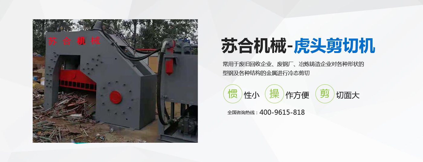 虎頭剪具有體積小、重量輕、慣性小、噪音低、動作平穩(wěn)、操作方便、靈活、剪切斷面大、剪刀口調(diào)整方便等優(yōu)點,操作使用安全。常用于廢舊回收企業(yè)、廢鋼廠、冶煉鑄造企業(yè)對各種形狀的型鋼及各種結(jié)構(gòu)的金屬進(jìn)行冷態(tài)剪切。剪切機的用途就是用來剪切定尺、切頭、切尾、切邊、切試樣及切除軋件的局部缺陷等。 滑縣蘇合機械制造有限公司性能穩(wěn)定,操作簡單。歡迎來電咨詢 <了解更多>